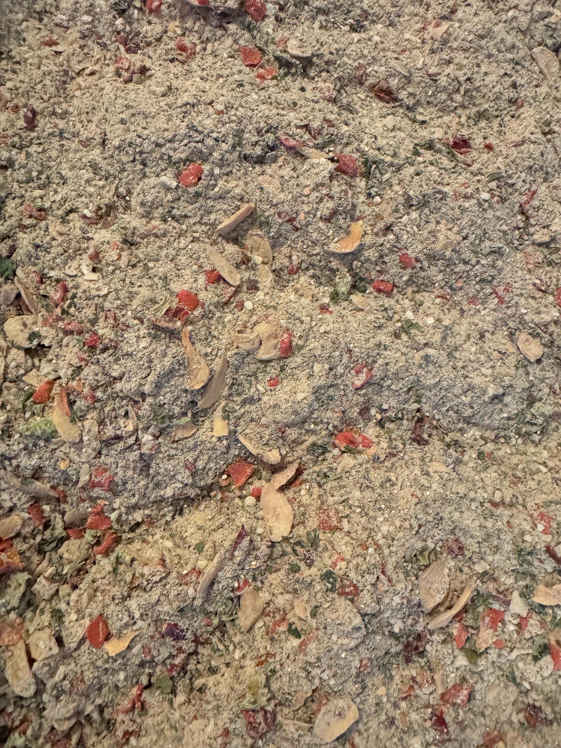 Ingredients: Onion, Chive, Carrot, Garlic, Parsley, Pepper, Red-Green-Chili Pepper, Thyme, Oregano, Basil, Celery, Chicken Broth Powder, Soy Sauce Powder, Sugar, Pepper, Spices, no salt.