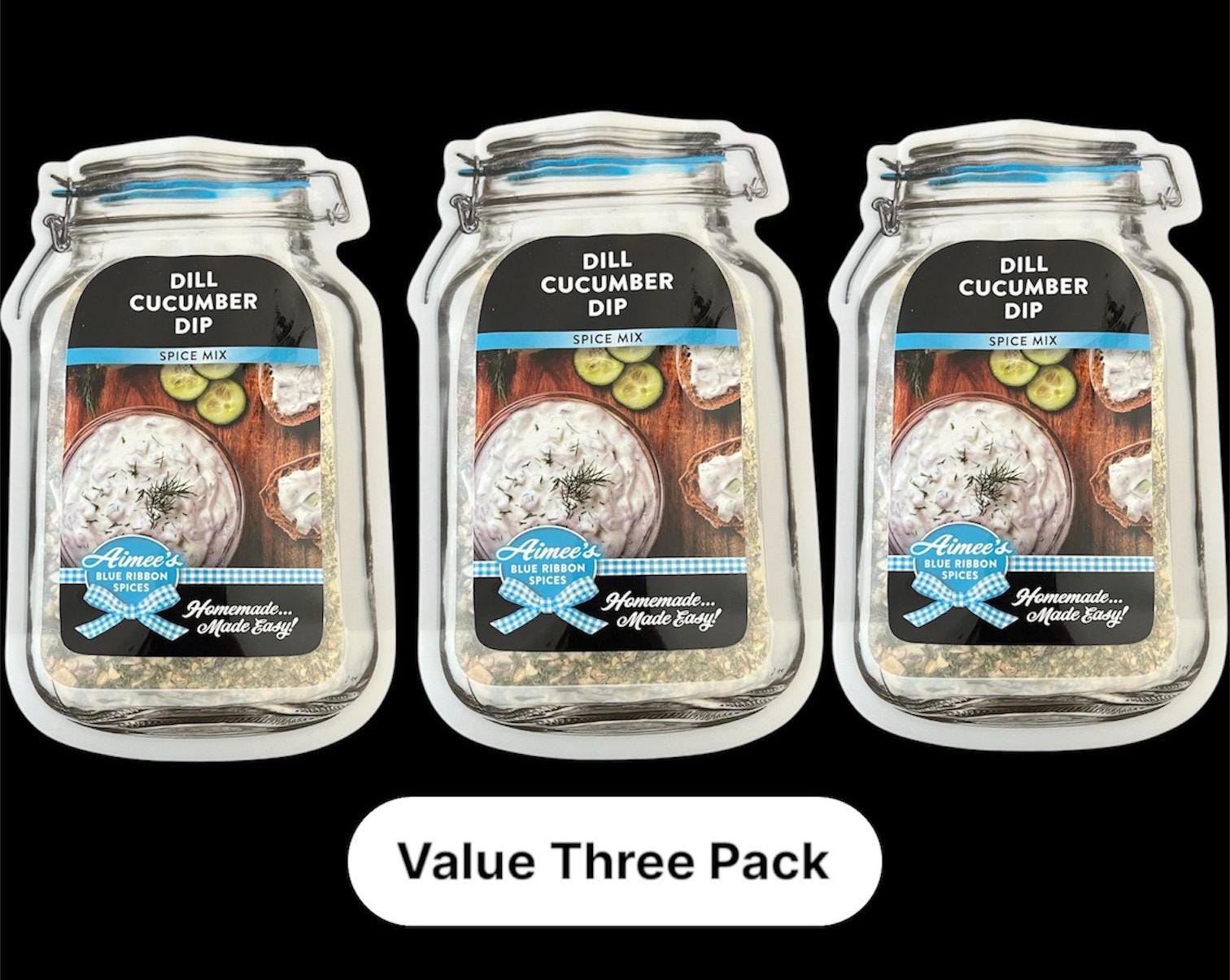 Dill Cucumber Dip Spice Mixes "Value 3 Pack Bulk Savings" Chip & Veggie Dip~Tzatziki Greek Dip~ Fresh Cucumbers~ Creamy Goodness~ Great Gift