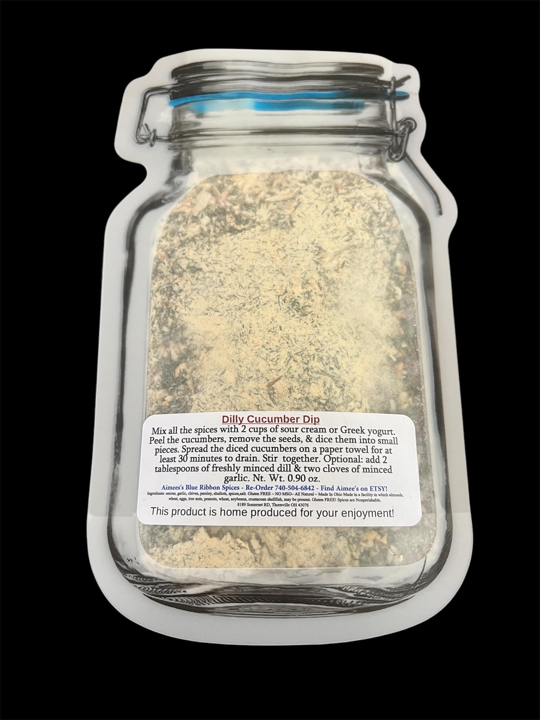 Dill Cucumber Dip** Spice Seasoning Mix (NO SALT Version) Chip Dip - Garden Cucumbers - Sour Cream- Gluten FREE! - Fresh Tasting-Veggie dip