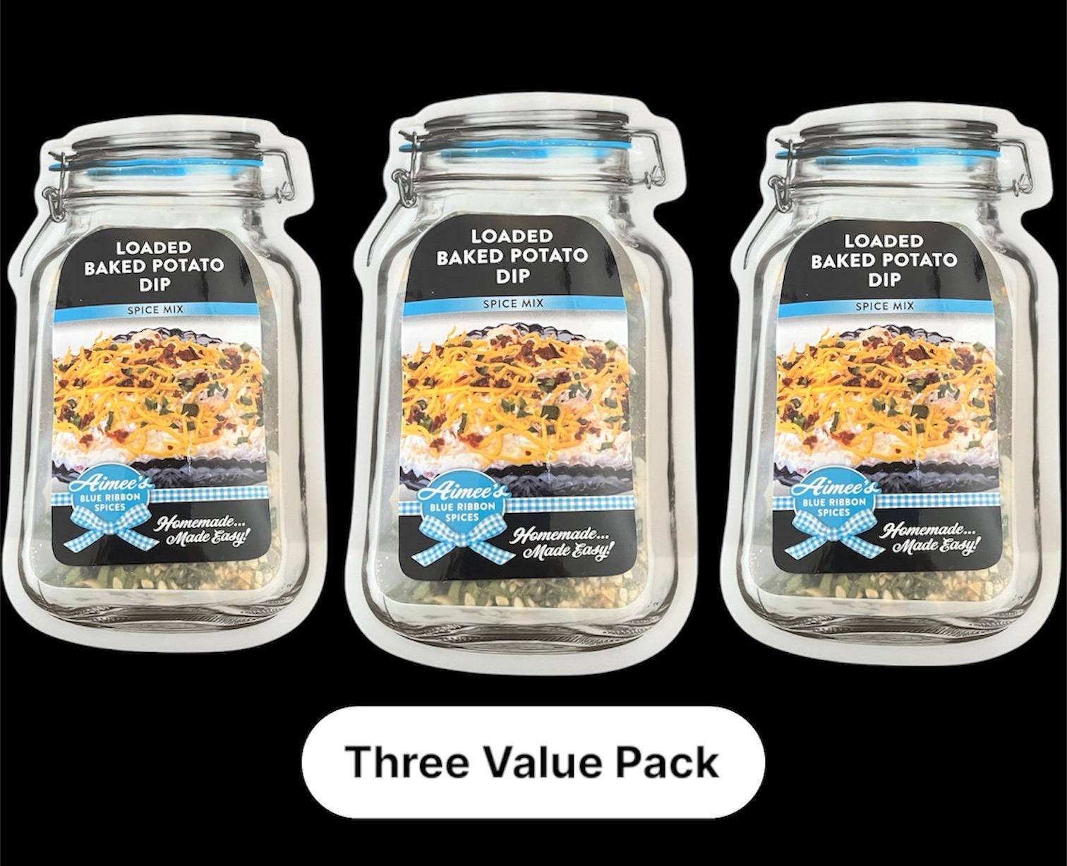 Loaded Baked Potato Dip Spice Seasoning Mixes "Value 3 Pack Bulk Savings” 3 Dip Mix Mason Jar Packets ~Bacon! ~ Spices are Gluten Free ~YUM!