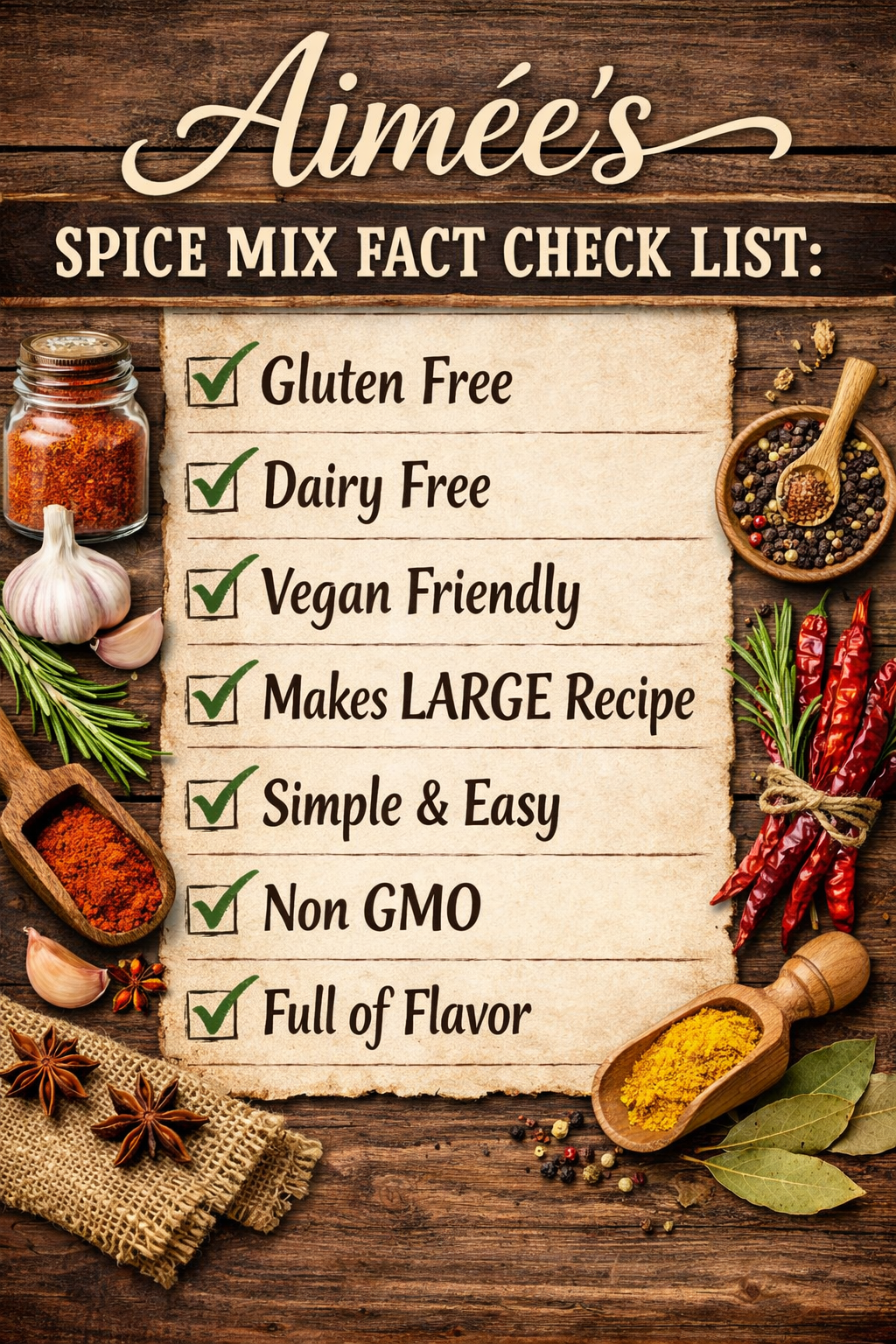 Welcome to Aimee’s Blue Ribbon Spices, where culinary passion meets handcrafted excellence. Since 2007, Aimee has been crafting unique spice blends, starting with favorites like Dilly Garlic, Spicy Taco, and Aimee’s Fresh Salsa. Each blend is naturally gluten-free, non-perishable, and packed with bold, delicious flavors. Our generous mason jar packets provide enough seasoning to create hearty meals for large families or to serve as delightful appetizers for gatherings. Elevate your cooking with Aimee’s Blue Ribbon Spices and experience the difference that quality and love can make in every dish.