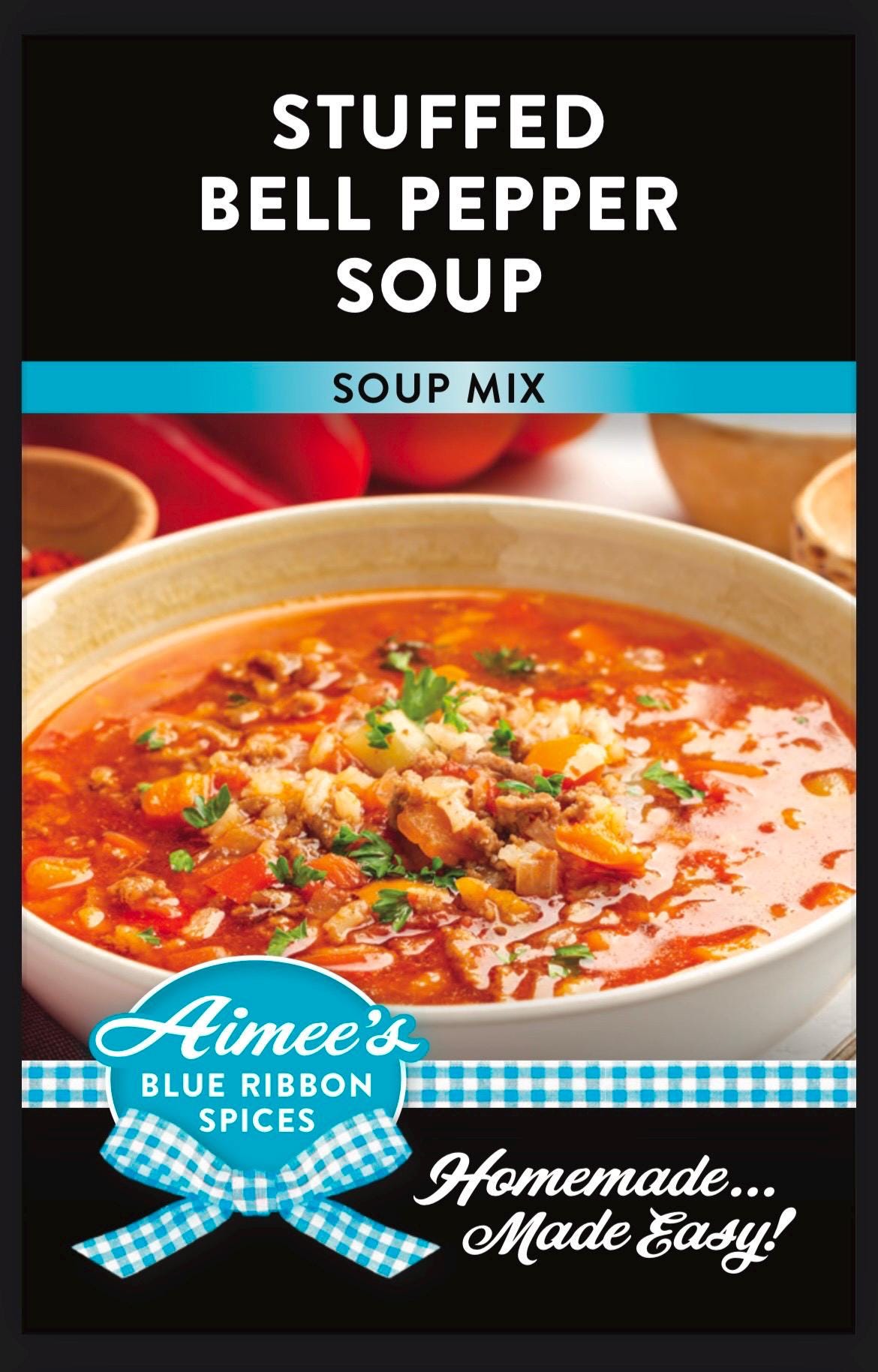 Welcome to Aimee’s Blue Ribbon Spices, where culinary passion meets handcrafted excellence. Since 2007, Aimee has been crafting unique spice blends, starting with favorites like Dilly Garlic, Spicy Taco, and Aimee’s Fresh Salsa. Each blend is naturally gluten-free, non-perishable, and packed with bold, delicious flavors. Our generous mason jar packets provide enough seasoning to create hearty meals for large families or to serve as delightful appetizers for gatherings. Elevate your cooking with Aimee’s Blue Ribbon Spices and experience the difference that quality and love can make in every dish. Stuffed Bell Pepper Soup - If you love stuffed bell peppers you'll love it more made into this hearty full of flavor soup. You can use whatever is your favorite bell pepper color or use all the colors. Let your imagination go wild. You can add so many other ingredients than what the recipe says to put your own spin on it. Want a vegetarian soup?.. Easy replace ground beef for Tofu. Recipe On Spice Label See Photo Check out our Etsy store: https://www.etsy.com/shop/aimeeblueribbonspice/ Ingredients: Green-Red Peppers, Onion, Garlic, Chili Powder, Basil, Carrot, Chives, Cumin, Parsley, Pepper, Celery, Tomato, Low Salt. Stuffed Bell Pepper Soup: In a large pot add 3T olive on over medium heat add: all spices, 1 lb. ground beef &/or sausage, Add chopped: - green beans, 2 green peppers, 1 red bell pepper, 1 Ig. yellow onion. Cook until tender. Add 1-28 oz. can crushed tomatoes, 1-14 oz can of roasted diced tomatoes, 5 cups of beef broth, Bring to a boil. Sir in 1 1/2 cups of white or brown rice. Simmer on low stirring occasionally for 40 minutes or until rice is done. Garnish with sharp cheddar cheese and crumbled bacon. Spice are Gluten Free and non perishable Check out our Etsy store: https://www.etsy.com/shop/aimeeblueribbonspice/ * Aimee's recipes make a large amount. Will feed 8-10 people. * Get Creative.... add more veggies, beans, or meat to make it heartier or go further. * Tofu is a great substitute or addition for protein. * Freeze Leftovers. * Use ½ of the mixture and make 2 times. * Makes a great gift, who doesn't love a great soup?!? Value Three Pack Bulk Savings Listing https://aimeeblueribbonspice.etsy.com/listing/1678611160